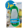 The JW Pet Cuttlebone Holder is the first of its kind to meet your pet bird's needs. No more difficult wires. The simple screw-on plastic bolt on holder can be used easily on vertical or horizontal barred cages for your pet bird and will hold any type of cuttlebone for your pet bird to enjoy. It holds cuttlebones in place with a plastic barrier to ensure that it doesn't move while your bird eats. An additional piece of plastic protruding from the holder makes the perfect perch for your bird to use as they enjoy their meal and includes a pocket to catch debris and fragments from falling outside of the cage to make clean up easier.