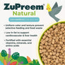 ZuPreem® Natural with added vitamins, minerals and amino acids provides healthy and delicious nutrition for everyday feeding. ZuPreem® Natural includes wholesome nutrition - Celery, Carrots, Parsley, Beets, Blueberries, Cranberries, and Ground flaxseeds are in each delicious pellet. ZuPreem® Natural diets are made with a consistent pellet color and shape to help keep your bird from selecting specific pellets in the food cup.