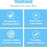 - Enrichment formula full of grains, fruits, nuts, legumes and extruded Tropican sticks