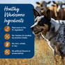 - WHOLESOME INGREDIENTS: BLUE wet dog food contains NO chicken (or poultry) by-product meals, NO corn, wheat (a common thickening agent used by other brands) or soy, and NO artificial flavors or preservatives