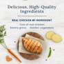 - BLUE TEMPTING TOPPERS DOG FOOD TOPPER: Features meaty morsels of real chicken in a savory broth with garden veggies