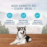 - FEED THREE WAYS: High protein BLUE Wilderness adult dog food makes a delicious treat, adds interest mixed into their favorite dry foods or can be fed as a meal on its own