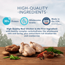 BLUE Wilderness Chicken Recipe for large breed adult dogs is a grain-free, protein-rich food that contains more of the delicious chicken your dog loves. Inspired by the diet of wolves, it's made with only the finest natural ingredients featuring deboned chicken, chicken meal & fish meal to supply the protein your dog needs. Sweet potatoes, peas and potatoes provide healthy complex carbohydrates while blueberries, cranberries and carrots support antioxidant-enrichment. And to support the special needs of bigger dogs, it's formulated with glucosamine and chondroitin to help promote joint health.