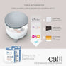 The Catit PIXI Fountain provides your cat with a continuous source of fresh, purified water. The hygienic stainless steel top helps prevent bacterial growth and is rust-free! The PIXI offers multiple drinking options to entice picky drinkers: calm flow, stream (with spout) and bubbling top. The PIXI's nose is a backlit water level window and with a water level window this adorable, you'll never lose sight of how much water is left. Fill the reservoir until the water level reaches the top of the whiskers, which marks the reservoir's maximum capacity. The pump is equipped with a sensor that detects when the water level is too low. PIXI's nose will also flash red when the water level inside of the reservoir is too low. Once the water reservoir is refilled, the fountain will start running again. Thanks to the bowl in front, your cat is able to drink at all times, even when the fountain is turned off. The fountain's drinking surface is wide and shallow, so that it doesn't place any stress on your cat's sensitive whiskers. The fountain also includes a Triple Action filter that keeps your cat's drinking water free of any impurities, debris, and softens tap water.
