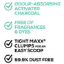 Tidy added all the tight-clumping, odour-fighting power of TidyLock Protection AND Ammonia Blocker technology to this unscented cat litter, but removed the dyes, fragrances and half the weight. How? Tidy innovation, and the odour-absorbing power of activated charcoal.