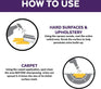 Carpet: Use the carpet applicator cap to spot clean with Urine Off BEFORE shampooing. Urine spreads 2-4 times the size of the surface mark as it soaks into the pad and sub-floor. Urine Off must contact all urine-soiled areas to work.