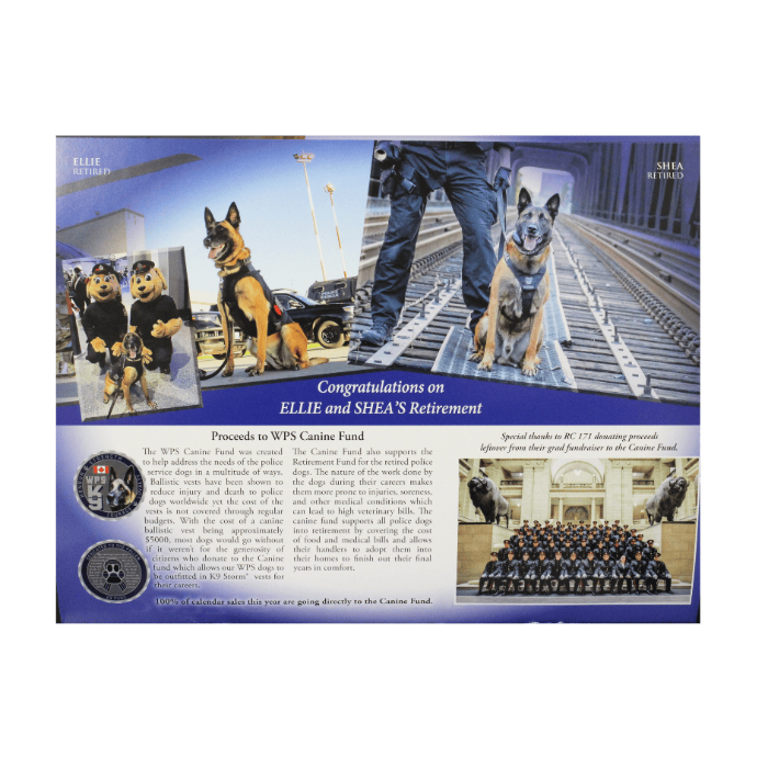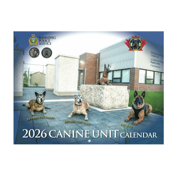The members of the Winnipeg Police Canine Unit and their canine partners are proud to present their 2026 Calendar and collectable coins!