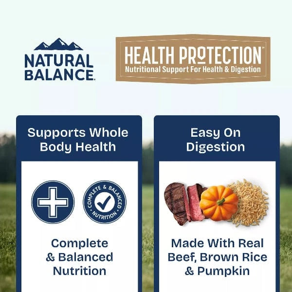 NUTRITIONAL STATEMENT: Natural Balance Health Protection Beef, Pumpkin & Brown Rice Stew is formulated to meet the nutritional levels established by the AAFCO Dog Food Nutrient Profiles for maintenance.