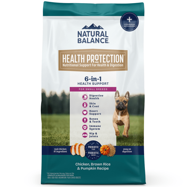 NUTRITIONAL STATEMENT: Natural Balance Health Protection Real Chicken, Brown Rice & Pumpkin Recipe Small Breed dog food is formulated to meet the nutritional levels established by the AAFCO Dog Food Nutrient Profiles for maintenance.