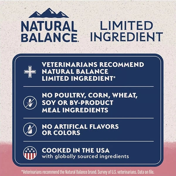 NUTRITIONAL STATEMENT: Natural Balance® Limited Ingredient Salmon & Brown Rice Recipe Dog Food is formulated to meet the nutritional levels established by the AAFCO Dog Food Nutrient Profiles for maintenance.