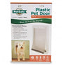 This durable plastic pet door gives you and your furry pal the freedom you both deserve. The soft, flexible transparent panels are safe and easy for your dog to push open so he can let himself out and back in. The panels can also keep drafts and insects out of your home.