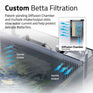 - Patent pending Diffusion Chamber disperses flow and polishes water to mimic clean, slow-moving currents of indigenous Betta habitats