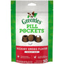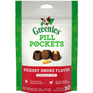 Turn medication time into treat time with Greenies Pill Pockets Canine Hickory Smoke Flavor Capsule Dog Treats. Each savory pouch is designed to easily conceal the smell and taste of most capsule-shaped pills and help make it easier for your pooch to get the treatment she needs to feel better. Designed by veterinarians, these all-natural treats are made with real chicken first and have a hickory smoke flavor for the high-quality protein your dog needs and the flavor she craves. With Greenies pill pockets, giving your canine companion her medicine can now be a positive, rewarding experience for you both. Simply place the pill in the pocket, pinch it closed and feed it to your BFF!
