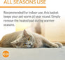 The 4-watt heater is removable for all season use. Pets will love to snuggle up in the enveloping warmth and softness of
