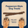 - PEPPERONI-STYLE DOG TREATS: For dogs that love a meaty treat, BLUE Stix are tender, meaty rolls of pure canine bliss! Break them up into smaller pieces for training treats or smaller dogs, or feed them whole and watch those tails wag