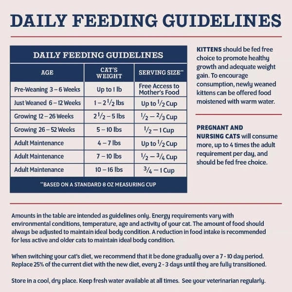 NUTRITIONAL STATEMENT: Natural Balance Ultra Protein Real Chicken & Chicken Meal Recipe Kitten Food is formulated to meet the nutritional levels established by the AAFCO Cat Food Nutrient Profiles for All Life Stages.
