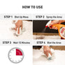 - Wait five minutes, then wipe away stain with a cloth.
