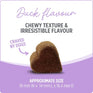 Excipient Ingredients: Duck meal, yellow peas, vegetable glycerin, sunflower oil, lentils, tapioca starch, cane molasses, herring meal, gelatin, mixed tocopherols, natural flavour.