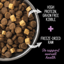 High protein kibble: Made with fresh pork from Alberta topped with freeze-dried raw cubes.