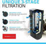 - Convenient flip-top lid allows for quick and easy access to filter cartridge for maintenance or replacement