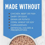 - Made without - chicken, beef, fish, dairy, eggs, grain, potato, corn, wheat, or soy