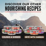• Hearty chunks are topped with succulent shreds of real meat for added protein and texture variety.