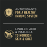 - High protein cat food formulas include antioxidants for a healthy immune system and linoleic acid and vitamin A to nourish skin and coat