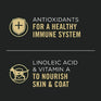 - Wet cat food includes antioxidants for a healthy immune system and linoleic acid and vitamin A to nourish skin and coat