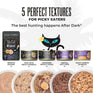Chicken broth, chicken, rabbit, chicken liver, chicken heart, sunflower oil, salt, guar gum, potassium chloride, taurine, choline chloride, magnesium sulfate, calcium carbonate, zinc oxide, iron glycine complex, vitamin E supplement, niacin (vitamin B3), thiamine mononitrate (vitamin B1), copper sulfate, sodium selenite, manganese sulfate, vitamin A supplement, d-calcium pantothenate, vitamin B12 supplement, riboflavin supplement (vitamin B2), pyridoxine hydrochloride (vitamin B6), biotin, folic acid, potassium iodide, vitamin D3 supplement.