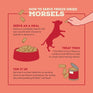 - Comes in bite sized morsels or breakable patties.