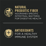 - With oat meal, which is easily digestible and gentle on the digestive system and a natural prebiotic fibre that nourishes specific intestinal bacteria for digestive health