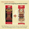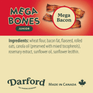 Mega Bacon: Wow! A big bacon reward for active and hard working dogs. Hard baked for greater crunch and longer gnawing time. Mega sized, mega bacon flavor. Most dogs’ mega favorite flavor.