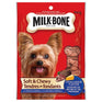 Milk-Bone Soft & Chewy Steak & Cheese Flavour Dog Treats are savory, tender treats made with a natural smoke flavor. Their gourmet meaty and cheesy taste is sure to spark pure joy in your pup as soon as he hears the crinkle of the bag and smells the delicious aroma of premium steak & cheese. With their pliable texture, these bone-shaped snacks are easier to chew and make the perfect reward for dogs with tender gums, senior dogs or any dog that prefers a softer treat. You can feel good about giving your pup such a decadent treat because it’s fortified with 12 vitamins and minerals to help keep dogs at their best.