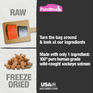 - Go ahead, look at our ingredients; made with only 1 simple human grade ingredient: 100% pure wild-caught sockeye salmon; proudly sourced and freeze dried RAW in the USA; a great high-value treat, topper, or training aid for your dog