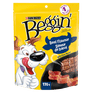 Take it from Hamlet, the Beggin' ambassadog — canines are plumb crazy about Purina Beggin' Strips With Beef Flavour adult dog treats. Each tender strip features real meat as the #1 ingredient along with real bacon. This irresistible combo of double-yum is sure to make your dog drool in anticipation when he sees you reach for the pouch. As the tantalizing aroma of bacon wafts through the air when you grab a treat, your canine companion's excitement level goes through the roof. He knows something amazing is coming his way, and his meat-crazed mind has only one goal—bacon! Give your dog a whole Beggin' bacon flavour strip when he welcomes you home at the end of the day, or break each one into smaller strips to reward him for being a good boy during neighborhood walks. Made without artificial flavours or FD&C colours, these Beggin' Strips Beef flavour dog treats deliver the big, bold, bacony taste your dog loves while giving you something to feel good about too. Make the special moments you share with your faithful friend twice as fun when you give him one of these Beggin' Strips dog treats with beef flavour, and show him you're happy when he's happy.