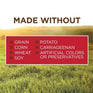 - Made without - grain, potato, corn, wheat, soy, artificial colors or preservatives