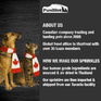 At PureBites, we’re always asking pet parents to “Go ahead, turn the bag around and look at our ingredients”. Simplicity and the high-quality ingredients we choose to feed our family makes a difference. At PureBites this means every member of our family. Our PureBites air dried sprinkles for dogs are the ultimate healthy topper or mixer. Made with only 1 simple human grade ingredient you can read, pronounce, and trust: 100% pure wild tuna. Nothing else. No artificial colours, fillers, sweeteners, or glycerin. Proudly sourced and made in Thailand using a delicate air drying process at low temperatures to help preserve fresh RAW whole food, locking in the taste dogs crave and high protein/low calorie nutrition that pet parents love. PureBites is a proudly Canadian company treating and feeding pets from coast to coast since 2005.