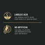 - Linoleic acid, an Omega fatty acid, helps support healthy skin and coat