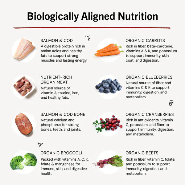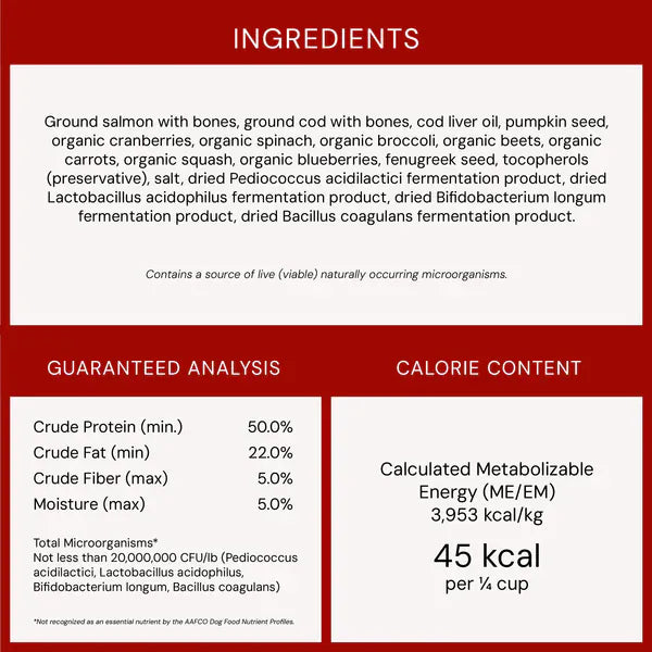 - 95% fish, nutrient-rich organs, & bone