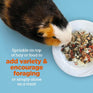 Sprinkle Topper over your pet’s hay or food, up to 10 g (2 Tbsp) per week.* Store in a cool, dry place.