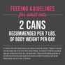 - High protein, with no fruits, vegetables or grains, because cats are carnivores.
