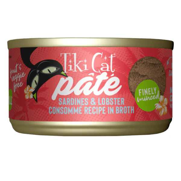 The ultimate feast for your feline! Tiki Cat Grill Sardine and Lobster Consommé Recipe in Broth Pate offers the high-protein, high-moisture nutrition cats need as carnivores. Real, flaked sardines, tuna and luscious lobster broth are mixed and minced to perfection in the soft pate form cats love. All ingredients are 100% non-GMO, with no fruits or vegetables, grains, artificial colors, flavors or preservatives.
