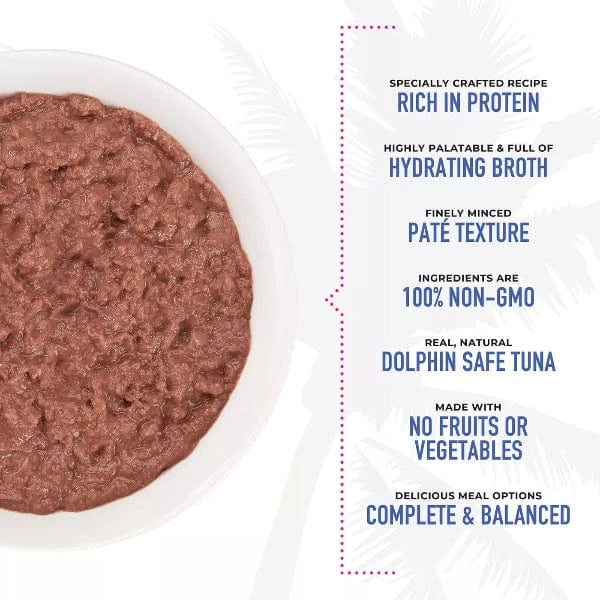 The ultimate feast for your feline! Tiki Cat Grill Tuna & Crab Recipe Pate wet cat food offers the high-protein, high-moisture nutrition cats need as carnivores. Real, flaked ahi tuna, crab and savory tuna broth are mixed and minced to perfection in the soft pate form cats love. All ingredients are 100% non-GMO, with no fruits or vegetables, grains, artificial colors, flavors or preservatives.
