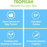 Tropican Egg Granules is a scientifically formulated extruded blend of grains, egg protein, essential vitamins & minerals for budgies, canaries and finches and other small birds. Made with whole egg for high-quality protein and essential.... Show Details