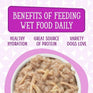 Featuring a variety of textures and flavors, these recipes include land and sea proteins like white chicken breast meat, lamb, and fish. Dogs in the Kitchen cans and pouches offer moderate levels of healthy fats and have a high moisture content for your kitchen carnivore.