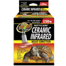 ReptiCare Ceramic Heat Emitters are the perfect 24 hour heat source for all reptiles. These porcelain heating devices screw into a standard porcelain incandescent socket, giving off intense "muscle-penetrating" infrared heat, while emitting no light. The flat-faced design is more efficient and longer lasting than conical designs which build up excess heat internally, ultimately carbonizing the element.