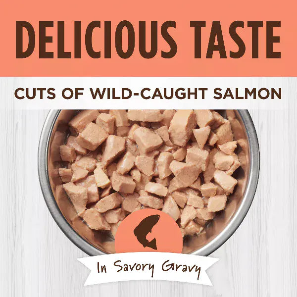 Made with real, wholesome ingredients, this wet cat food topper features cuts of wild-caught salmon in a savory gravy for added flavor and hydration. Perfect as a topper or mixer, it adds mealtime variety with high-quality protein. Crafted with real meat, it’s grain-free and made without potatoes, corn, wheat, soy, by-product meals, or artificial colors or preservatives.