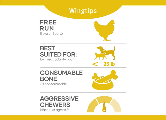 • Chicken Wingtips can be fed as a meal replacement, including meat, connective tissues, joint cartilage, fat, bone and sometimes a small amount of marrow.