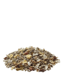 Grains (oats 8%), seeds, derivatives of vegetable origin, vegetables (peas 10%, parsnip 2%, leek 1%), vegetable protein extracts, fruit (pineapple 2%, raisins 2%), insects (mealworms 4%), nuts, minerals, herbs, MOS, FOS, calendula, grape seed