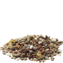 Cereals (barley 8%), derivatives of vegetable origin, vegetables (peas 8%, tomatoes 2%), seeds, vegetable protein extracts, fruit (papaya 2%, raisins 1.5%), insects (mealworms 4%), nuts, minerals, yeasts, oils and fats, herbs, FOS, MOS, calendula, grape seed, algae, yucca